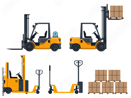 forklift pallet jack cargo arrangements illustration logistic men at work