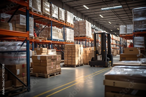factory, forklift, warehouse, industry, shipping, transportation, business, logistic, cargo, delivery, distribution, rack, storage, working, industrial, box, cardboard box, good, merchandise, package, storehouse, container, cardboard, delivering, freight, horizontal, indoor, photo, retail, shelf, shipment, supply, interior, pallet, people, equipment, commercial, driving, export, order, stock, color image, inventory, moving, occupation