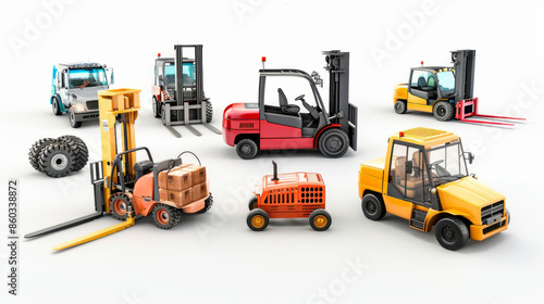 Forklifts: Vehicles for lifting and transporting heavy loads isolated on white background