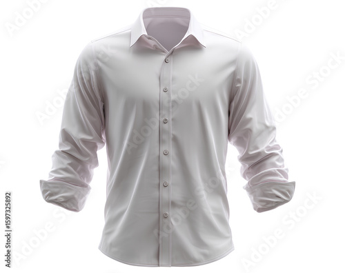 Formal Shirt on Invisible Male Torso, Front View with Rolled Sleeves, Crisp Fabric Texture, Isolated on Transparent Background