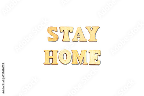 forming word stay home with wooden alphabets