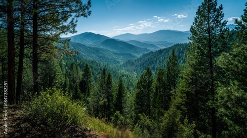 Forrest Horizon. Natural Green Landscape with Early Morning Light in Mountain Mountainside
