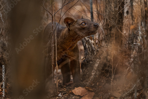 Fossa - Cryptoprocta ferox, Kirindi forest, Madagascar. The biggest predator of Madagascar forests.