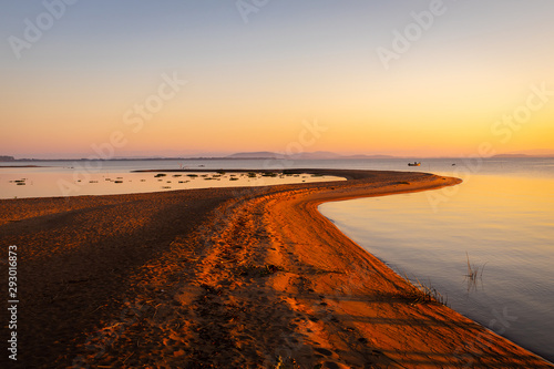 beach, sunset, sea, water, ocean, sunrise, sand, sky, coast, landscape, cloud, sun, nature, wave, blue, beautiful, summer, travel, coastline, tide, holiday, red, morning, wave, calm