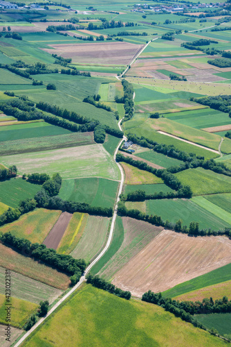 Fotografía aérea con campos de cultivo en la región de Friul Venecia - Julia en el norte de Italia