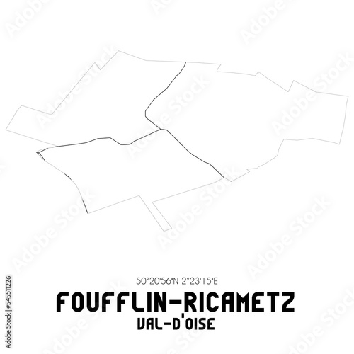 FOUFFLIN-RICAMETZ Val-d'Oise. Minimalistic street map with black and white lines.