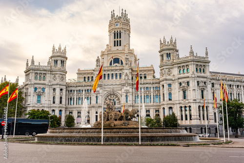 Fountain of the goddess Cibeles with the Madrid City Hall building in the background, Spain.