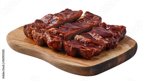 rib, bar-b-q, bar-b-q, meat, food, grilled, delicious, tasty, juicy, savoury, cooked, dinner, lunch, dinner, protein, sauce, glaze, sweet, spicey, smoky, brown, red, wooden, board, cutting, isolated, background, white, photo, image, picture, gastronomy, cookery, main, course, dish, platter, serving, eatery, meal, healthy, unhealthy, fats, favor, taste, summer, autumn