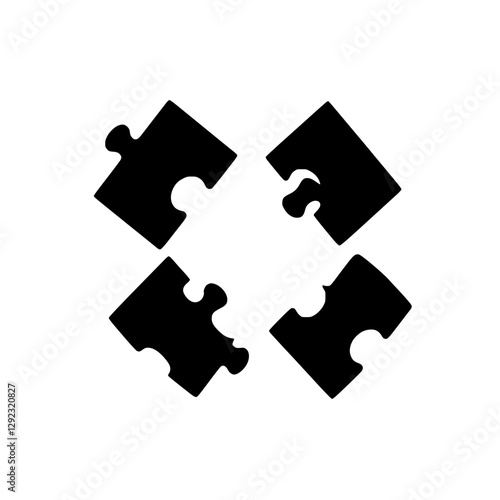 Four black puzzle pieces arranged in a square against a white background.