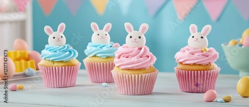 cupcake, rabbit, decoration, table, colours, treat, dessert, sweet, festive, holiday, background, spring, chocolate, cream, sugar, icing, fun, party, edible, joy, happiness, celebration, gathering, children, family, colours, design, nature, playful, tradition, egg, gift, event, delicious, receipe, plate, enjoyment, aroma, delight, easter, banner, poster, 2025, happy