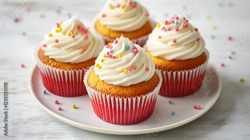 cupcake, dessert, frosting, sprinkle, sweet, occasion, serve, gathering, warmth, honed, joyful, presentation, fluffy, enjoyment, round, festive, party, treat, happiness, delightful, indulgence, favor, receipe, homemade, snack, sugar, icing, vanilla, pastry, plate, creamy, eat, tasty, epicure, cheerful, holiday, celebration, appetising, baking, colourful, decoration, bake, fresh, cake