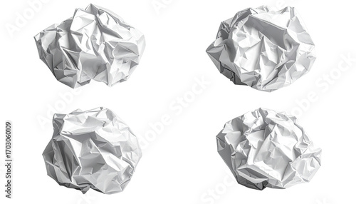 Four crumpled pieces of white paper, arranged in a 2x2 grid against a black background. Each piece is a different, slightly varying crinkle pattern