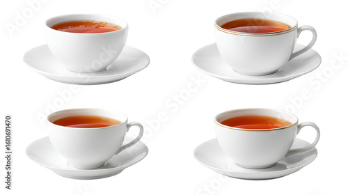 Four cups of tea, a cozy and aromatic tea time experience soothing.