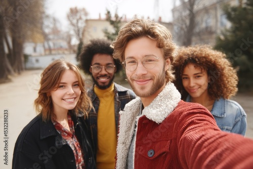 friends, selfie, outdoors, people, diverse, casual attire, happy, urban, multiracial, portrait, group, 4, smiling, photo, street, caucasian, black, mixed, image, photo, fashion, lifestyle, friendship, young