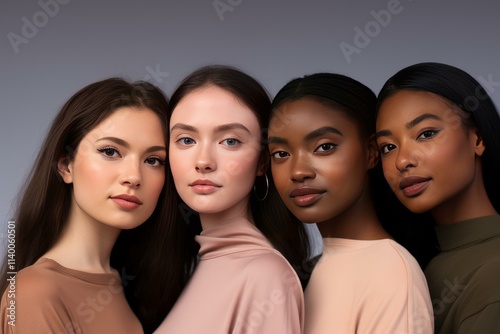 beauty, fashion, woman, young, diversity, background, portrait, model, adult, inclusion, posing, serious, modern, studio, make-up, connection, skincare, ethnicity, looking, natural, oneness, style, elegant, glamour, togetherness, cosmetic, shot, group, community, confidence, female, trendy, sophisticated, multicultural, multiracial, right, empowerment, sisterhood, face, human, neutral, individuality, different, campaign, race, equal, expression