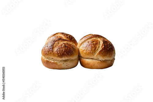 Four Freshly Baked Bread Rolls Stacked on a Wooden Board – Isolated on White Background