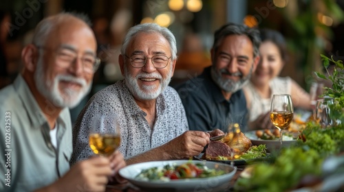 happy, senior, friends, meal, eatery, food, table, goggles, wine, smiling, dinner, group, elderly, people, lunch, celebration, togetherness, mature, social, gathering, companionship, enjoyment, cheerful, connection, community, lifestyle, fun, together, casual attire, joy, conversation, relationship, healthy, family, joyful, goodtime, quality time, celebrate