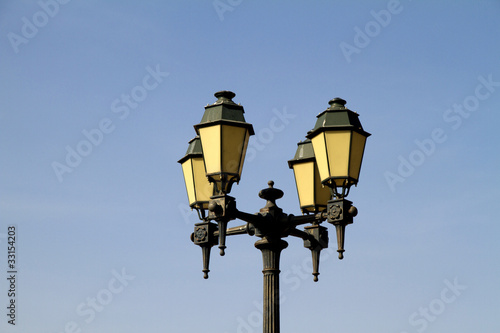 antique, architecture, artistic, blue, city, classic, day, detail, electrical, illumination, lamp, light, object, old, ornament, pole, retro, 4, head, sky, street, street light, style, urban, vintage
