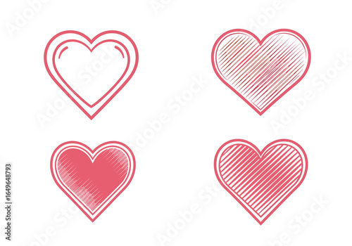 Four heart illustrations with different textures and outlines in a grid arrangement design