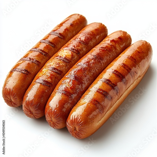 Four hot dogs are grilled and placed in a bun. Generative AI