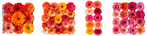 Four letters of the word "LOVE" are individually crafted from vibrant, colorful flowers