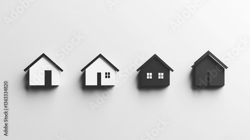 house, home, model, real, estate, property, building, architecture, minimalist, design, house, home, model, white, background, concept, banner, website, simple, modern, residential, dwelling, structure, apartment, black, grey, icon, symbol, illustration, graphic, image, digital, render, three-dimensional, small, miniature, choice, selection, option, variety, contrast, development, market, sale, purchase, rent, buy, sell