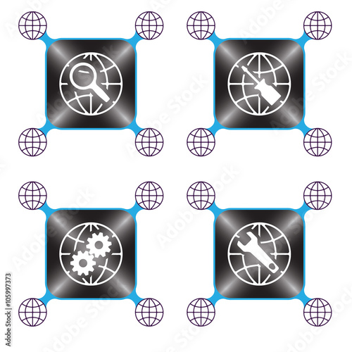 magnifier, spanner, screwdriver, cyberspace, globe, earth, earth, sphere, map, planet, travel, global, pictogram, international, frame, box, border, circle, circular, work, office, project, layout, advertising, background, business, concept, cover, design, illustration, label, mark, modern, promotion, signs, symbol, tags, template, vector, web, round, object, blue, black