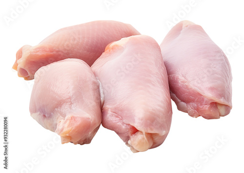 Four pieces fresh raw chicken legs meat isolated on white background, transparent background, clipping path, remove background, pen tool path, png background