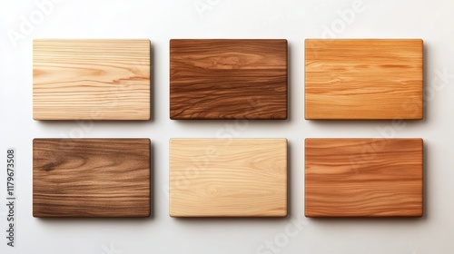 Four Rustic Wooden Blocks Arranged on a Bright White Background Showcasing Natural Textures and Simple Minimalistic Design