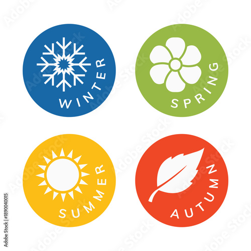 season, winter, spring, summer, autumn, icon, circle, snowflake, flower, sun, leaf, blue, green, yellow, red, symbol, weather, nature, temperature, cycle, change, vector