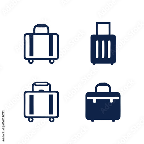Four Simple Dark Blue Suitcase Icons on White Background Travel Baggage Luggage Set