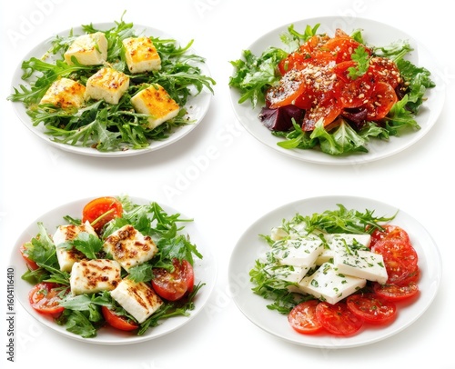 salad, cheese, grilled, tomatoes, greener, vegetable, plate, healthy, food, dish, fresh, cookery, delicious, diet, light, lunch, dinner, tasty, summer, spring, vegetarian, protein, calcium, nourishment, ingredient, plated, colourful, food photography, isolated, white, background, closeup, crispy, lemony, appetising, simple, light meal, mediterranean, healthy eating, freshness