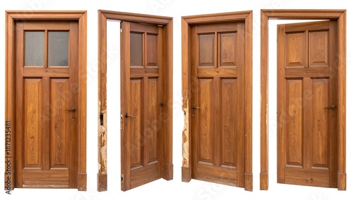 Four wooden doors showcase craftsmanship and architectural design elements.