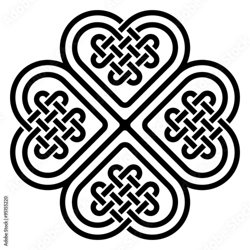 Four-leaf clover shaped knot made of Celtic heart shape knots, vector illustration