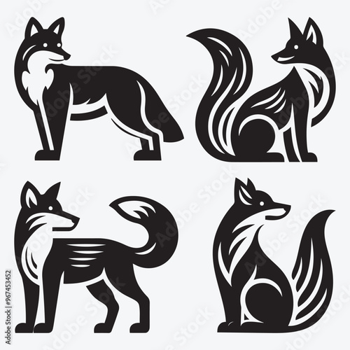 Fox Logo Silhouette Bundle Clip Art Vector Illustration