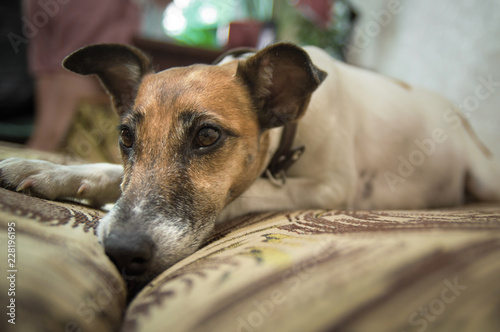 pet, dog, cute, house, fox, terrier, couch, lying, sofa, animal, canino, hair, room, home, beautiful, friends, indoor, 1, small, bed, domestic, white, brown, background, adorable, mammal, living, purebred, portrait, breed, stain, happy, pedigreed, adult, love, obedient, mobile phone, eye, sleep, grey, quiet, funny, sleepy, comfort, serene, friendship, inside, down, view, furniture