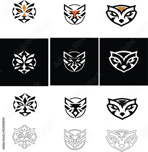 fox, tiger, cat, vector, icon, animal, set, illustration, collection, mask, branding, event, storytelling, visual, graphic, design, nature, wildlife, modern, creative, abstract, logotype, symbol, avatar, emblem, identity, elegant, geometric, minimalist, stylised, silhouette, wild, sophisticated, unique, versatile, dynamic, vibrant, bold, artistic, expressive, diverse, animal, outline, clean, professional, decoration, flat, buttons