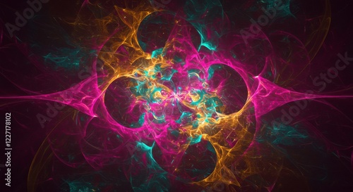 fractal art, fractal, abstract, art, design, background, pattern, texture, vibrant, colourful, magenta, teal, gold, symmetry, intricate, aethereal, cosmic, digital artwork, illustration, graphic, wallpaper, hallucinogen, hypnotic, visual, fantasy, imagination, creativity, energy, light, glow, ornate, complex, detailed, kaleidoscope, modern art, artwork, aesthetic, beautiful, stunning