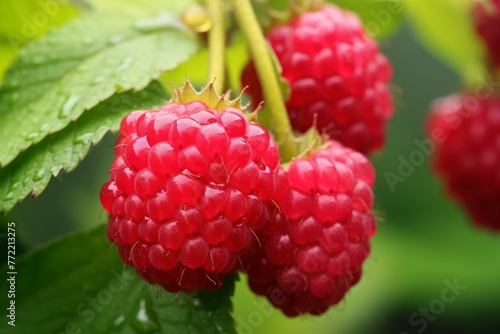 Fragrant Raspberry bush plant. Harvest branch. Generate Ai
