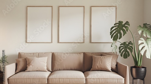 Frame mockup, Living room wall poster mockup. Interior mockup with house background. Modern interior design.