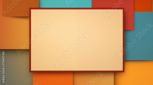 Frame mockup with copy space for text. Create an artistic collage with a retro style on a warm brown, red, blue abstract background. Illustration background.
