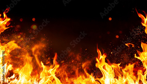 frame, of, flames, on, a, black, background, with, fire, ember, particle, flames, effect, texture, heat, burn, burning, inferno, hot, red, orange, abstract, yellow, danger, warm, energy, background, blazing, fiery, illustration, realistic