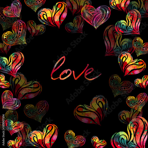 Frame of multicolored hearts. Happy Valentine's Day. Vector illustration