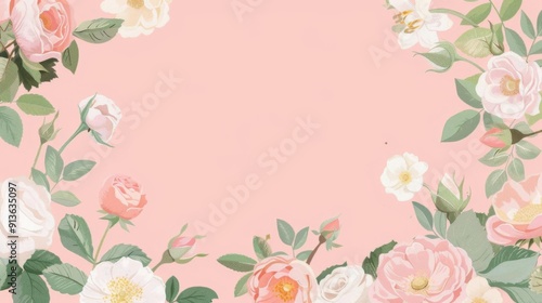 Frame of roses, empty center, simple modern clean background, flat design illustration