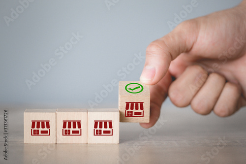 Franchise business concept,hand choose wood blog with franchise marketing.