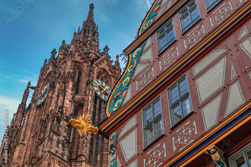 architecture, church, building, cathedral, tower, city, aged, europa, religion, landmark, gothic, heaven, frankfurter, house, historic, gargoyle, veneer, brick, catholic, historical building, history