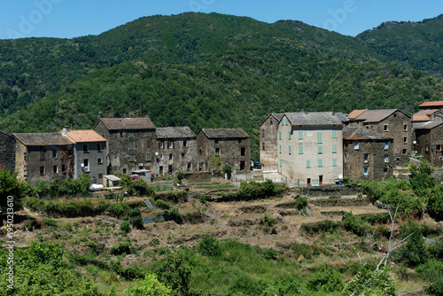 corsica, bergdorf, mountain, hill, forest, house, church, mountain, heaven, summer, green, blue