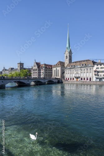 Fraumünster Church, Münster Bridge and Limmat River, Zurich Old Town, Zurich, Canton Zurich, Switzerland