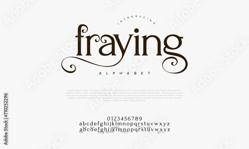 Fraying premium luxury elegant alphabet letters and numbers. Elegant wedding typography classic serif font decorative vintage retro. Creative vector illustration