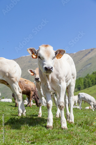 animal, blue, eat, eating, grass, italy, mountain, mountain, nature, rest, agriculture, alps, beast, beef, calf, cattle, country, cow, cow, dairy, domestic, farm, farming, farmland, eat, feeding, field, green, italian, landscape, farm animal, lying, mammal, meadow, pasture, resting, rural, white